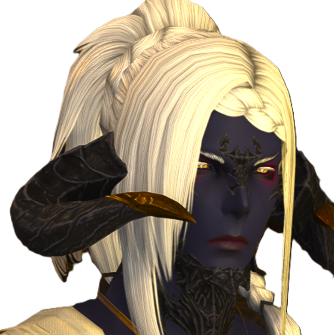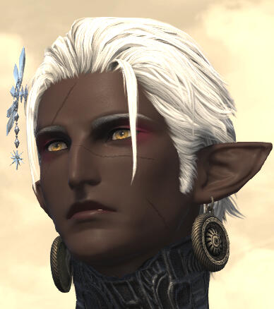 Fai looks like your average Xaela from a distance, but up close, he looks markedly different. For one thing, his scales are abnormally shaped (like stars) compared to other Au Ri men, as he used to be a Duskwight Elezen of Ishgardian descent,